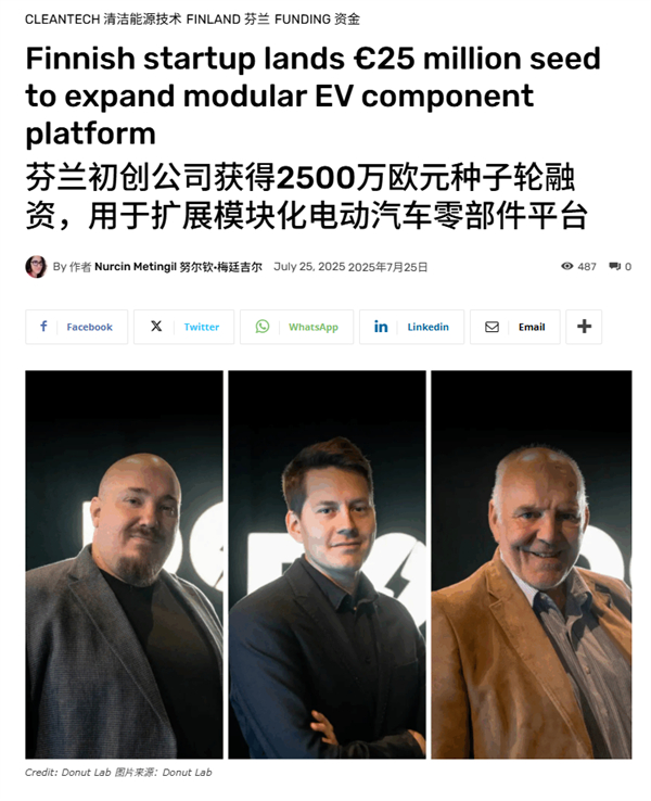 果不其然,2025年7月,Donut Lab就拿到了2500万欧元的种子轮融资,明眼人都能看出来,拆分公司本身就是一套技术加资本的组合拳,而固态电池刚好是这套拳里最能吸引投资人的卖点。