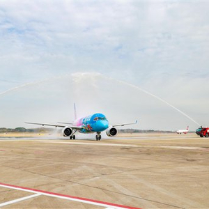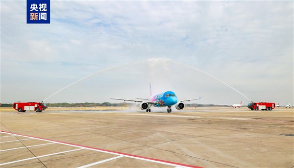 飞机当天平稳降落在南京禄口国际机场后,缓缓穿过象征民航最高礼仪的水门。