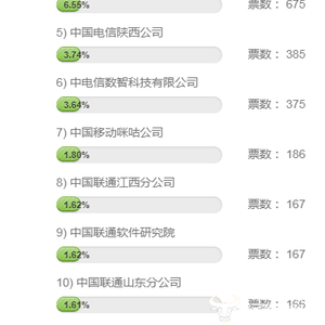 中电信数智科技、咪咕公司、江西联通、中国联通软件研究院和山东联通等多家公司票数也在持续追赶中。