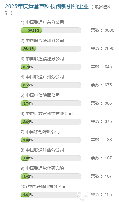 “2025年度运营商科技创新引领企业”评选 广东联通深圳联通福建联通暂居前三
