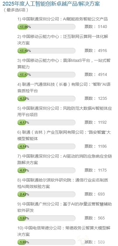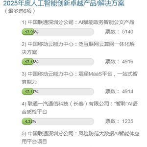 “2025年度人工智能创新卓越产品/解决方案”评选:深圳联通和中移云能竞争激烈