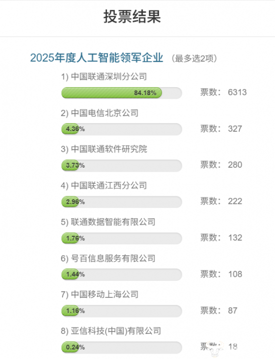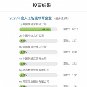 2025年度人工智能领军企业评选:深圳联通 北京电信 联通软研院暂居前三
