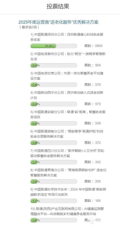 2025年度运营商“适老化服务”优秀解决方案评选:深圳联通、泰州电信、甘肃电信暂时领先