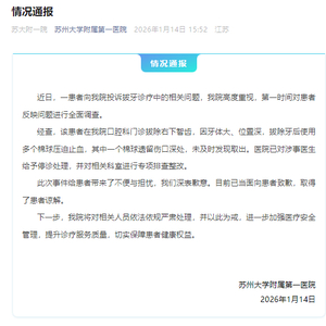 新京报讯 1月14日,苏州大学附属第一医院发布情况通报,内容如下: