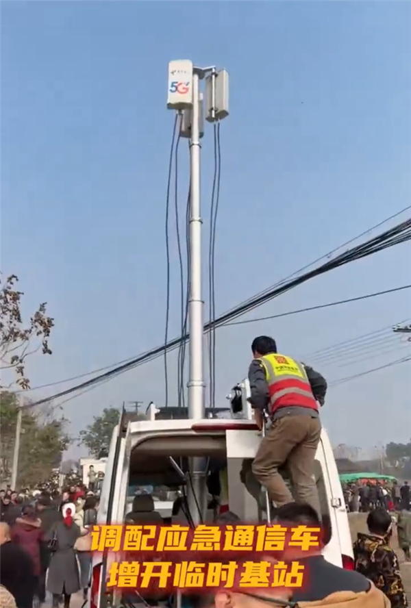 面对突发的通信压力,中国电信合川分公司迅速响应,紧急调配应急通信车、增开临时基站。