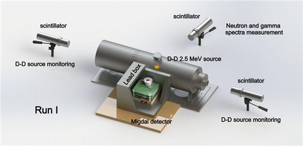 利用紧凑型氘-氘聚变反应加速器中子源,轰击“照相机”内的气体分子,会同时产生原子核反冲与米格达尔电子,二者形成“共顶点”的独特轨迹。