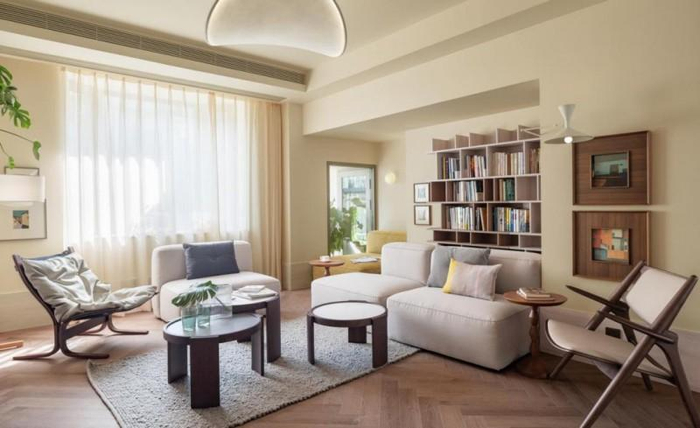 设计师通过客厅与卧室的位置对调,重新梳理空间动线,让家居布局更趋合理;主卧采用休闲办公一体化设计,可移动电视柜、读书角与双人办公桌的组合,精准匹配年轻夫妇的生活需求;厨房岛台的增设,为家人创造了更多交流互动的契机;全屋以原木色为主的自然色调,更添温馨氛围,让改造后的老宅实现了功能性与舒适度的双重提升。当黄先生一家首次踏入新家,“像走进大平层”“梦中情房”的赞叹声不绝于耳,满是对新生活的期待。