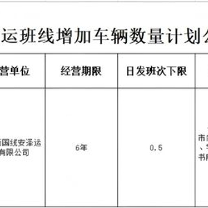 客运班线数量将从10辆调整为30辆。