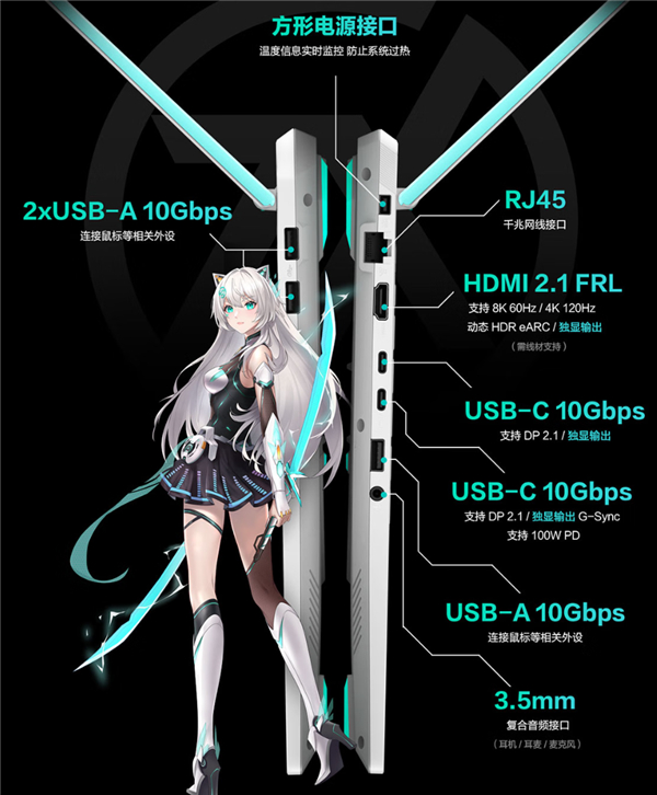 作为一款潮流的电竞本,ROG魔霸新锐从里到位都流淌着游戏的血液,赛博风格可以说武装到了牙齿。