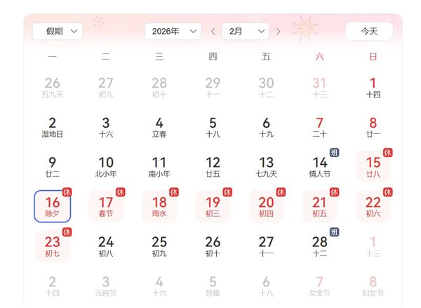 1月16日消息,今天是1月16日,下个月的今天就是除夕了,春节假期也将进入倒计时。