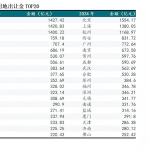 此外,西安从第4位跌至第7位,土地出让金降幅超30%。常州从第7位骤降至第14位,出让金近乎腰斩。合肥从第10位滑落至第19位,出让金降幅也超50%。而在2024年上榜的盐城、济南、佛山,在2025年则退出前20名。这些城市或受供地节奏,或遭遇了房企策略调整的冲击。
