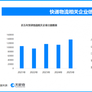 2025年邮政寄递达2165亿件 现存快递物流相关企业超131万家