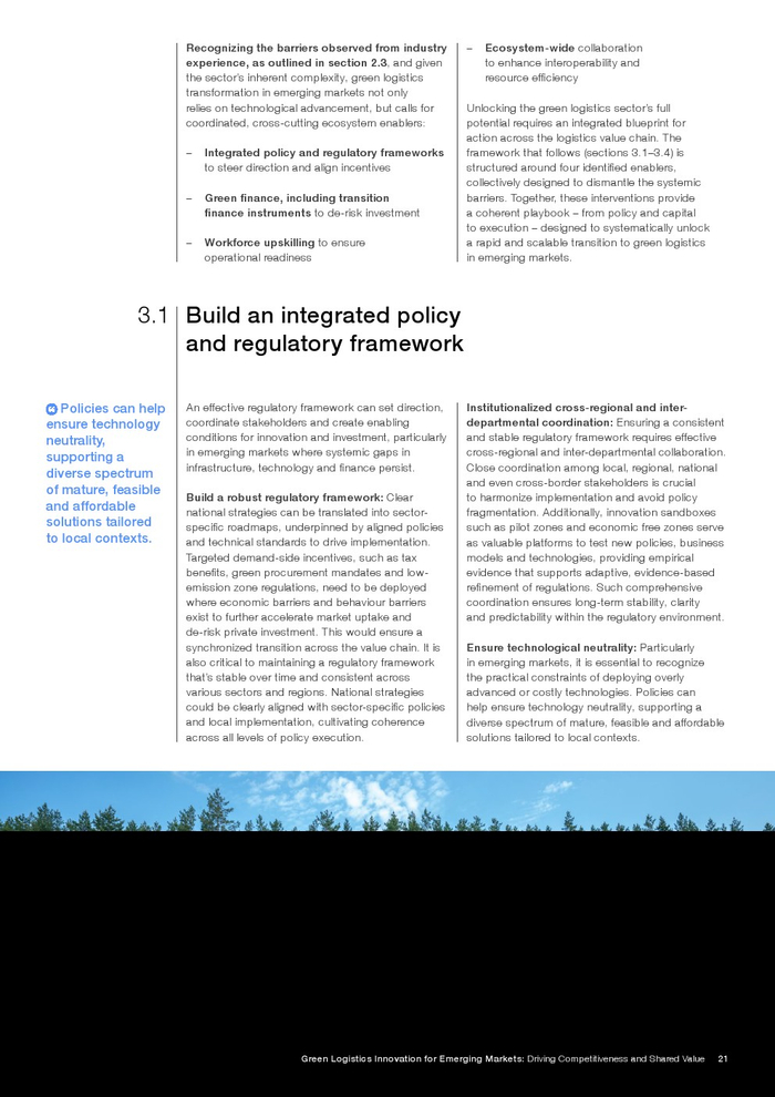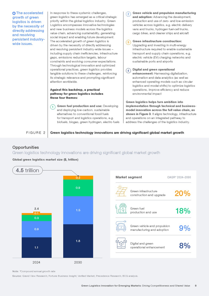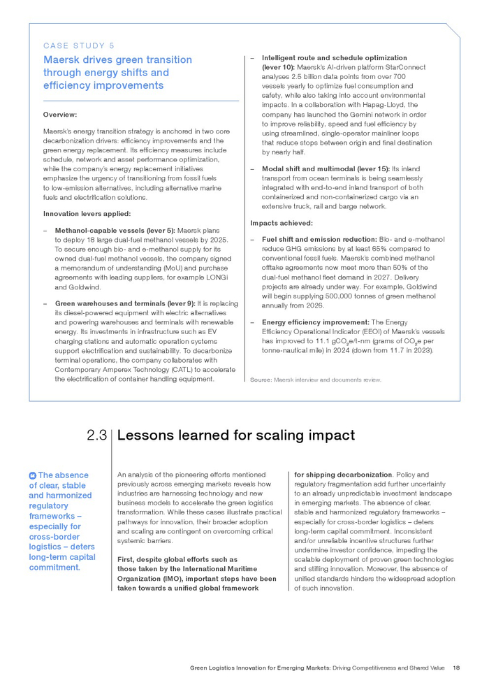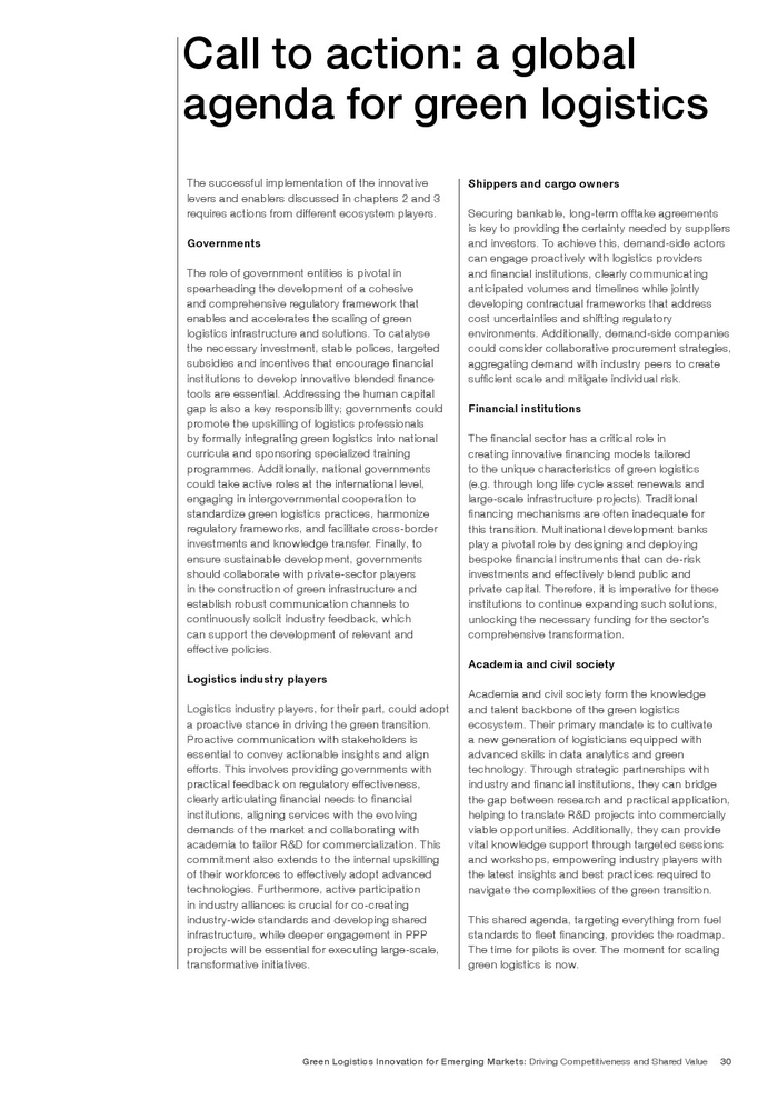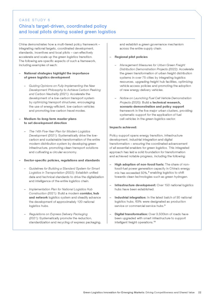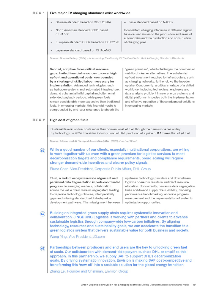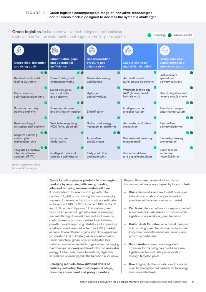 从趋势上看,绿色物流正从试点阶段迈向规模化扩张阶段。未来竞争不再取决于单项技术领先,而取决于谁能更快构建“政策、资本、技术与组织能力”协同的系统能力。在新兴市场,这种协同既是减排路径,也是缩小物流成本差距、重塑全球价值链分工的重要抓手。