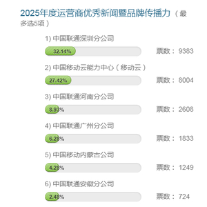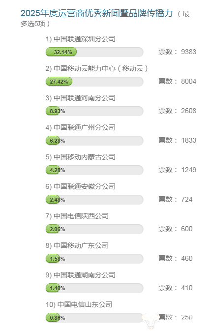 “2025年度运营商优秀新闻暨品牌传播力”投票:深圳联通 中移云能 河南联通位列前三