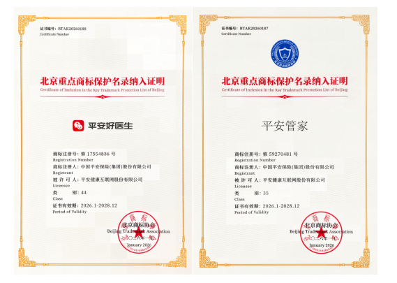 平安好医生与平安管家荣登2025“北京重点商标保护名录”