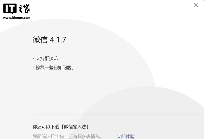 大家在IT之家微信号回复“微信”两字,即可获取当前最新官方内部版微信下载。