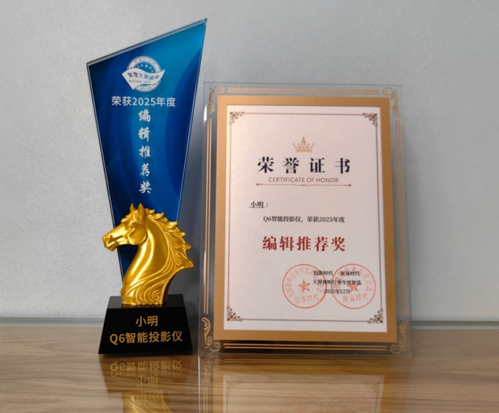近日,备受行业关注的2025年度大屏视听行业年度评选结果正式揭晓。作为LCD投影领域的领军品牌,小明投影凭借深厚的技术积淀、卓越的产品力与行业影响力,一举斩获《优秀品牌奖》;旗下拳头产品Q6智能投影仪则以其在设计、性能与体验上的全面突破,荣获《编辑推荐奖》。双重荣誉加身,既是行业对小明投影品牌实力的高度认可,更是对其以用户需求为核心、持续推动技术创新的最佳嘉奖。