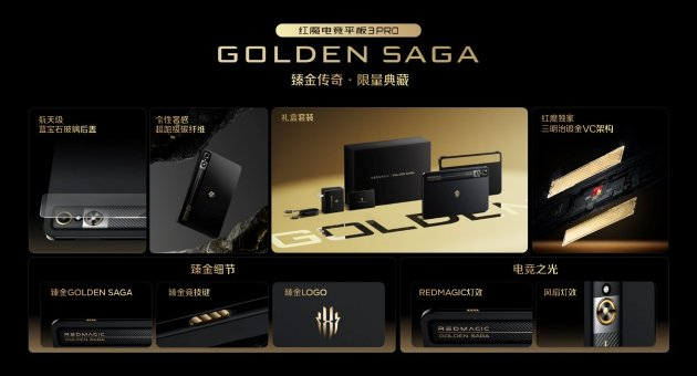 红魔 11 Pro+ 臻金传奇搭载行业独有的24GB+1TB的顶配存储组合,内部配备凯夫拉磁吸保护壳、专属磁吸散热器与臻金卡针、120W魔闪快充等一整套臻金体验,售价为:9899元;