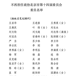 因任职年龄等原因,49人不再担任第十四届北京市政协委员