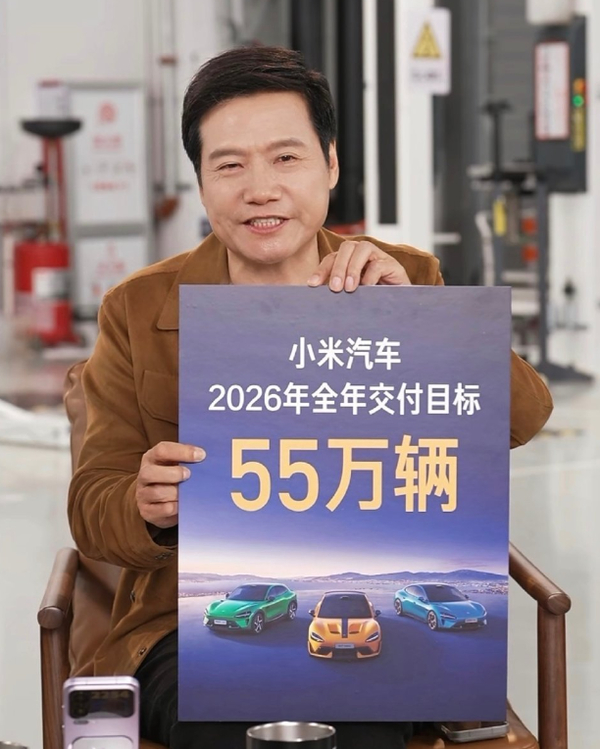 而2026年1月3日,在新年直播中,小米公司董事长雷军曾宣布,小米汽车今年的交付量目标设定为55万辆。