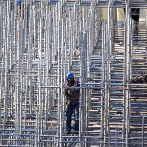 工人在建筑工地紧张施工。新京报记者 王子诚 摄