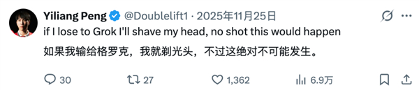 面对老马和 Grok 5 的挑衅,很多职业哥都站出来凑热闹,他们像多年前欣然接受阿尔法狗挑战的柯洁一样,表示自己很乐意教训一下硅基小老弟。