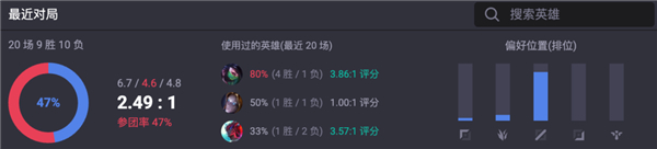 英雄联盟大魔王,LPL永远的梦魇,社会你飞哥 Faker,在最近 20 场对局中除了一把重开局外,战绩是 9 胜 10 负,胜率 47%。