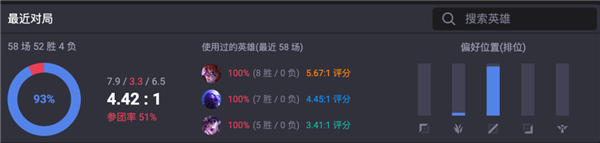 有个昵称叫做 ???? (快递员/送货员)的老哥,用了 51 个小时,打了 56 局,然后以 93% 的胜率,一路冲到了韩服王者。