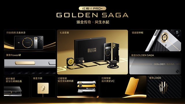 红魔 11 Pro+ 臻金传奇搭载行业独有的24GB+1TB的顶配存储组合,内部配备凯夫拉磁吸保护壳、专属磁吸散热器与臻金卡针、120W魔闪快充等一整套臻金体验,售价为:9899元;