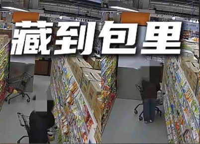 监控画面显示,该女子专挑无人角落拆开商品包装盒,将里面的车厘子倒进自己的随身包中,其余选购商品则正常结账,试图掩人耳目。
