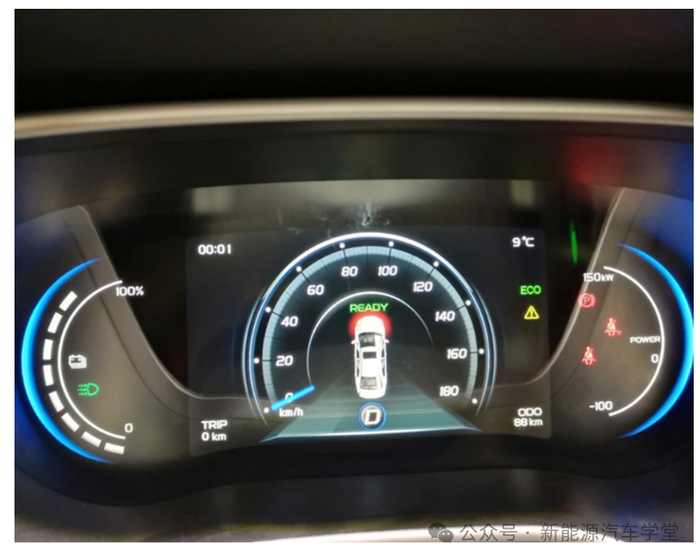 组合仪表的故障提示,READY指示灯正常点亮,上电挂挡踩下加速踏板,驱动电机转动异常,故障提醒警告灯点亮。