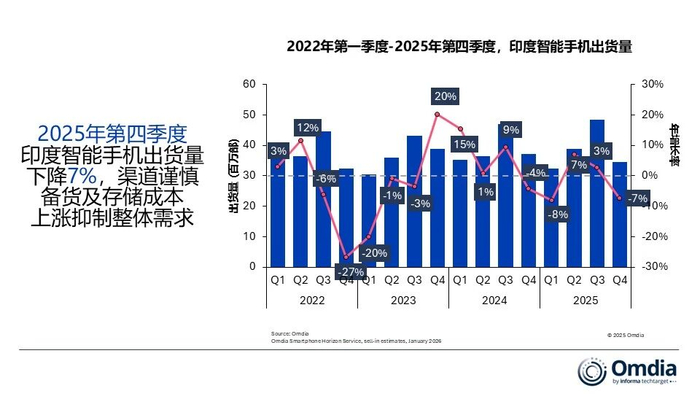 2025年,印度智能手机出货量因需求疲软与成本压力下滑1%,vivo保持市场领先地位