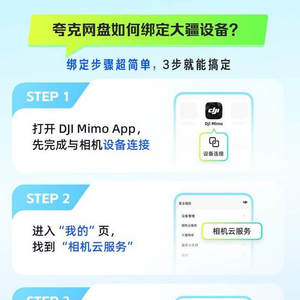 据介绍,用户只需打开大疆专属影像应用DJI Mimo,在“我的”页面中找到“相机云服务”入口,选择绑定夸克网盘,授权后即可使用。