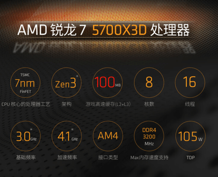 而 AM4 平台的游戏场景首选锐龙 7 5700X3D,这款处理器拥有 8 核 16 线程,采用 Zen3+3D V-Cache 技术,3.4GHz 基准频率搭配 4.6GHz 睿频,96MB 三级缓存的配置让它成为高性价比游戏性能王者,在 14 款现代游戏中平均性能与 i5-14600K、R5 9600X 基本持平,部分 3A 大作仅略低 5% 左右,且 Windows 11 24H2 更新为 Zen3 架构带来约 10% 额外性能增益。目前市场价格约1700元,游戏性能提升幅度可达 30%+,远超同预算内存升级效果,其不支持超频的特性让功耗控制优秀,原装散热或百元级风冷即可稳定运行,AMD 在 CES 2026 暗示复产 3D V-Cache 系列处理器,5700X3D 作为入门级 3D 缓存型号,后续供应更有保障,适合 2K 分辨率游戏玩家,尤其是《黑神话:悟空》《赛博朋克 2077》等吃缓存的 3A 大作爱好者。