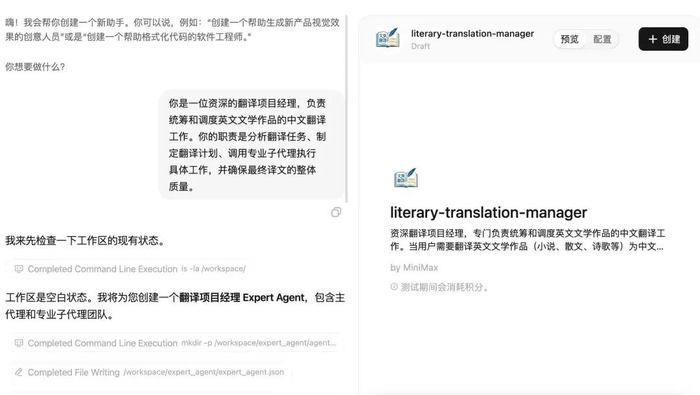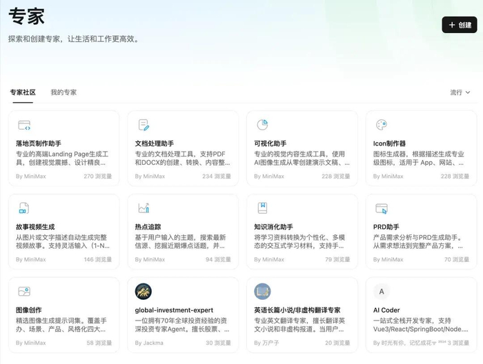 MiniMax 封装了一些专家 Agent,同时用户也可以自己创建专家并发布到社区