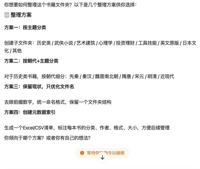 确认之后,它也没有马上改文件名,而是先给我了一份整理规划:会有哪些分类,如何判断主题,模糊情况怎么处理。