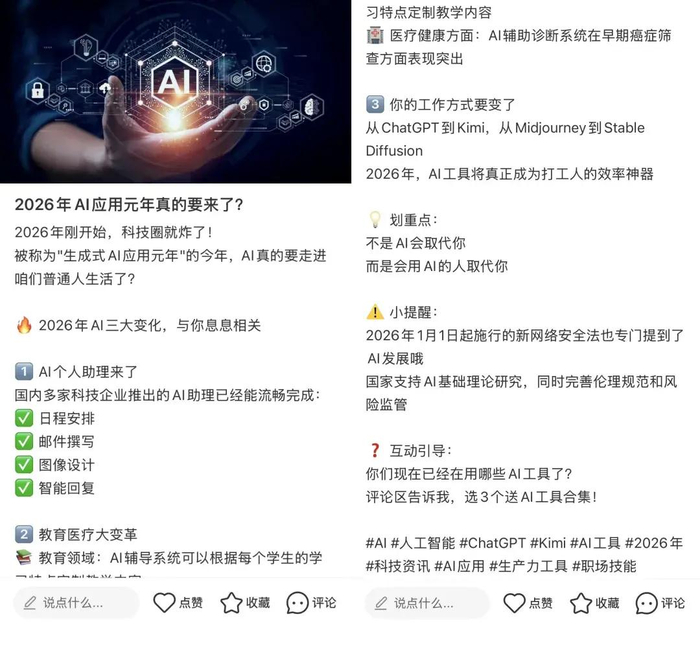 MiniMax 生成的小红书帖子,包含小红书标志性的 Emoji 文风,Tag以及增加互动率的引导