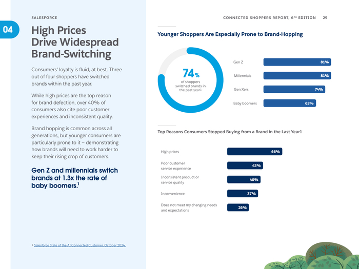 消费者方面,品牌忠诚度整体下降明显,近74%的人曾在过去一年内转换品牌,主因包括高价格和服务体验差异。为此,67%的零售商推行或计划推行多样化的会员忠诚计划,平均消费者参与4个以上。除传统积分返利外,年轻消费者尤为青睐如独家体验、游戏化奖励等创新要素。