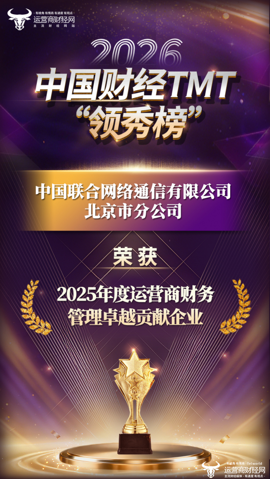 本着公平公正公开的原则,中国联合网络通信有限公司北京市分公司荣获“2025年度运营商财务管理卓越贡献企业”奖项!