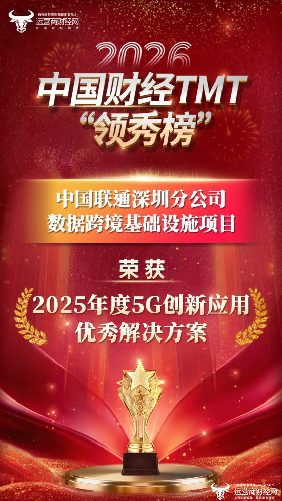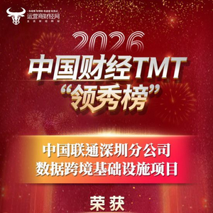 优秀成果!深圳联通的数据跨境基础设施项目获得2026中国财经TMT“领秀榜”奖!
