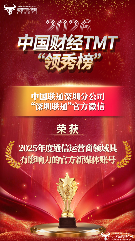 公布了!“深圳联通”官方微信斩获“2025年度通信运营商领域具有影响力的官方新媒体账号”奖项
