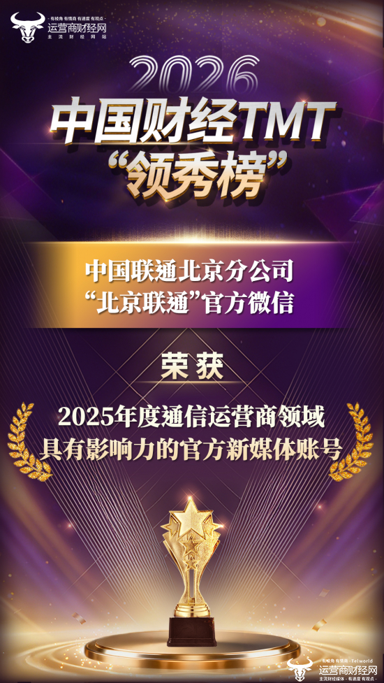 万众期盼! “北京联通”官方微信斩获“2025年度通信运营商领域具有影响力的官方新媒体账号”奖项