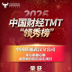 武汉联通上榜2026中国财经TMT“领秀榜” 荣获“2025年度优秀政企业务创新项目”奖!