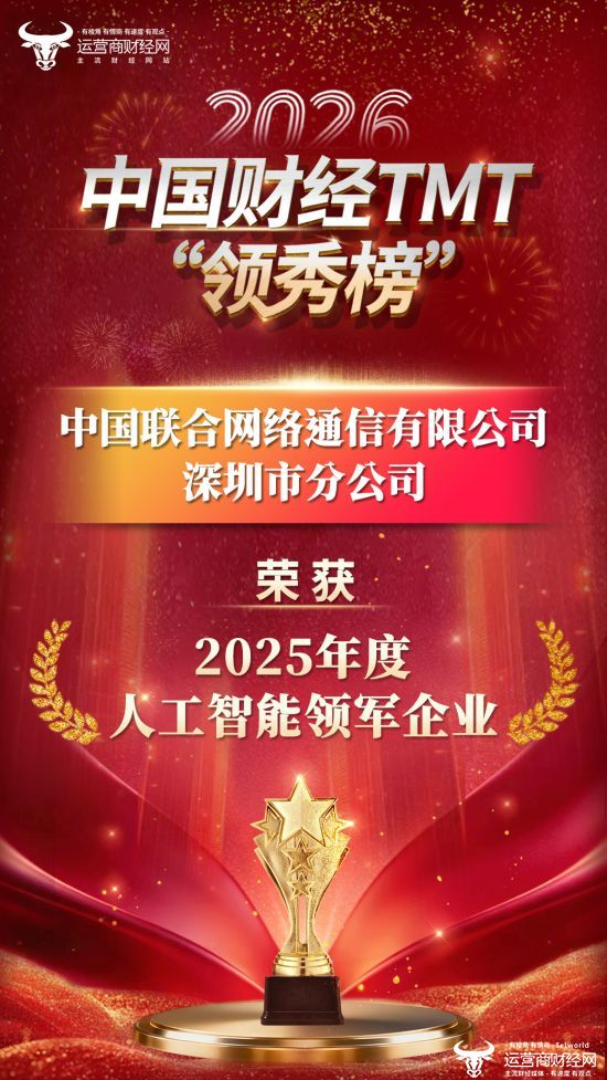 2026中国财经TMT“领秀榜”重磅发布 深圳联通斩获“2025年度人工智能领军企业 ”!