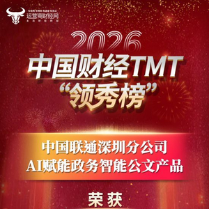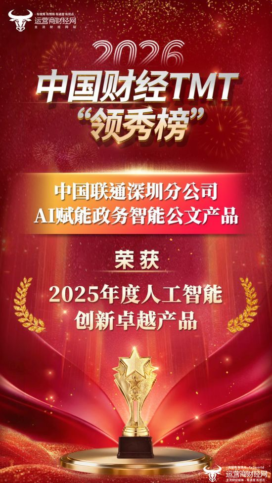 重磅消息!深圳联通荣登2026中国财经TMT“领秀榜”斩获“2025年度人工智能创新卓越产品”奖!