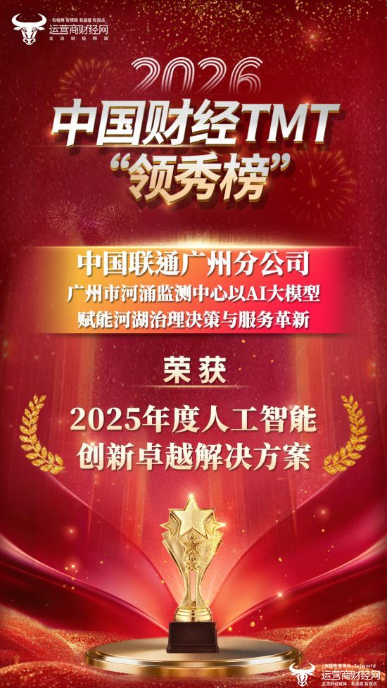 恭喜!2026中国财经TMT“领秀榜”评选结果揭晓:广州联通获得“2025年度人工智能创新解决方案”奖!