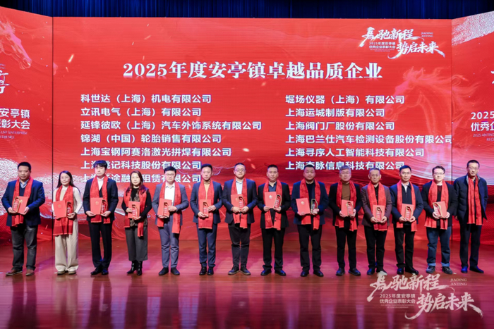 1月29日,“马驰新程,势启未来——2025年度安亭镇优秀企业表彰大会”在嘉定区安亭镇文体中心电影馆隆重举行。嘉定区政府主要领导及分管领导出席该活动,并为获奖优秀企业颁奖。上海阀门厂股份有限公司(以下简称“上阀股份”)凭借在产品质量、技术创新与行业贡献等方面的突出表现,荣获 “2025年度安亭镇卓越品质企业” 称号。