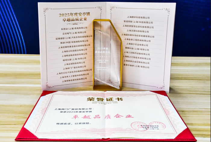 上海阀门厂股份有限公司荣获“2025年度安亭镇卓越品质企业”