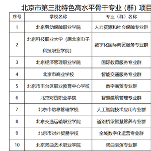 北京第三批“特高”专业群和实训基地名单公布
