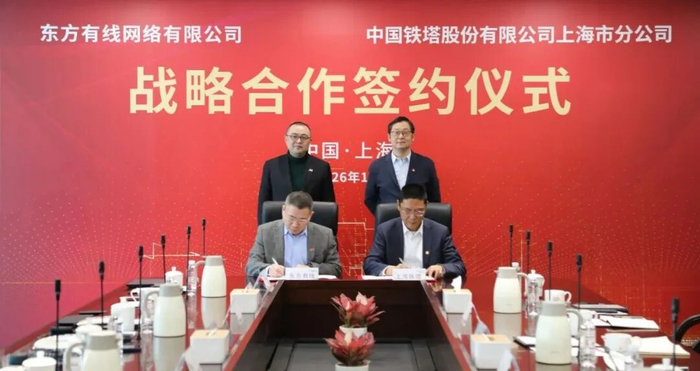 1月29日上午,中国铁塔股份有限公司上海市分公司(下称“上海铁塔”)与东方有线网络有限公司(下称“东方有线”)签署战略合作协议。双方将围绕数字新基建、数智化创新等领域开展全方位合作,共同助力上海城市数字化转型与数字经济高质量发展。